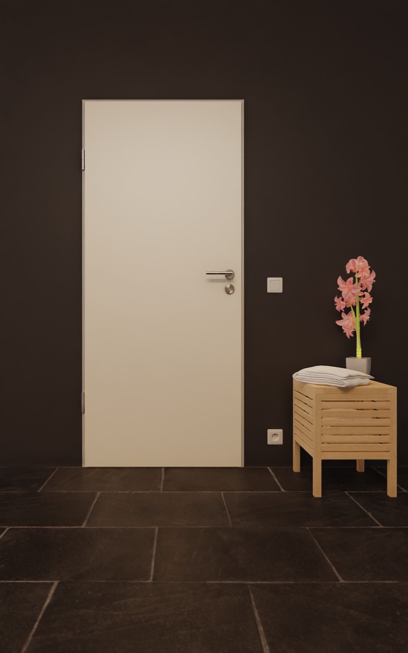 Estetyczna drzwi funkcjonalne z stabilnym wkładem z płyty wiórowej idealnie nadają się do kuchni i łazienki: