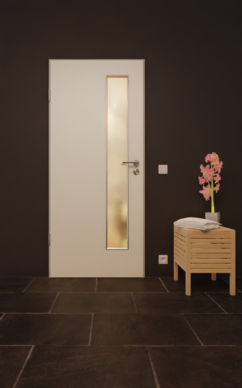 Estetyczna drzwi funkcjonalne z elegancką powierzchnią CPL w białym lakierze 9016 niezawodnie wytrzymuje krótkotrwałą wysoką wilgotność: