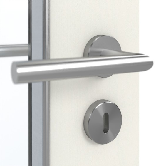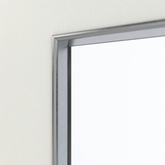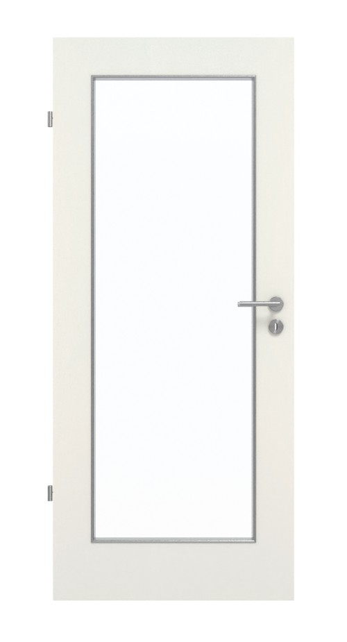 O jasność w pomieszczeniu dba duży otwór świetlny, który stanowi centralny element skrzydła drzwi. Dekor w kolorze białym sprawia wrażenie przyjemnie świeżego, a dzięki swojej lekkiej strukturze jest również bardzo miły w dotyku. Wytrzymała powłoka HPL jest szczególnie odporna na zarysowania i ścieranie oraz na dostępne w handlu środki czyszczące.
