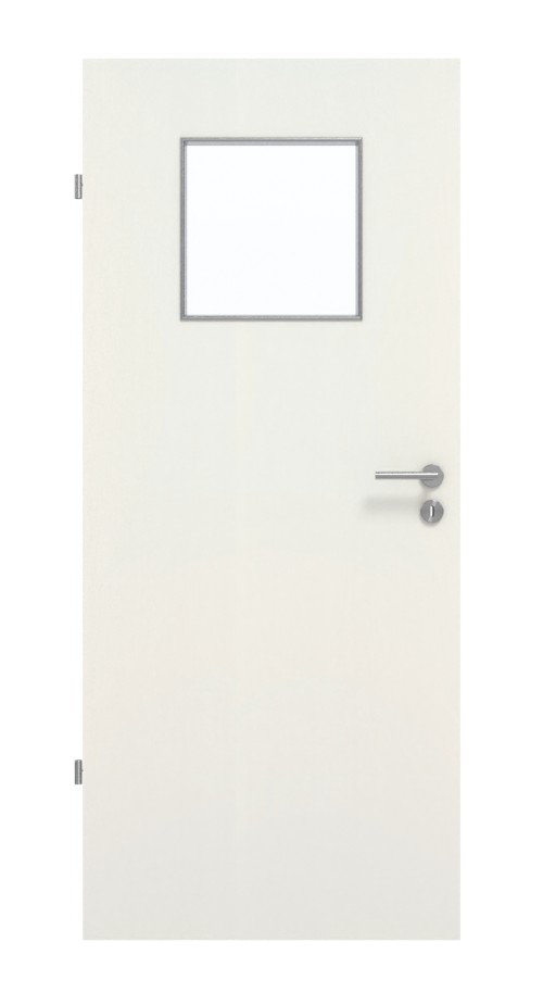 W środkowej części górnej jednej trzeciej drzwi znajduje się kwadratowy wycięty fragment szyby, który zapewnia delikatny dopływ światła. Dzięki wykończeniu Biała struktura drzwi te stanowią idealną podstawę dla wszystkich Twoich pomysłów na aranżację wnętrz. Wytrzymała warstwa HPL jest odporna na ścieranie, uderzenia i zarysowania oraz wyjątkowo odporna na działanie światła.
