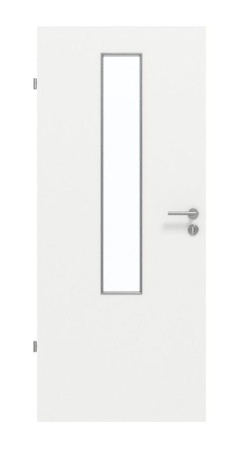 Dekoracyjne drzwi do pomieszczeń wilgotnych wyróżniają się łatwą do czyszczenia okleiną HPL oraz prostym przeszkleniem: