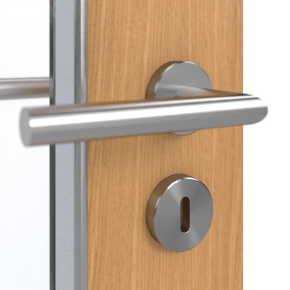 Estetyczna funkcjonalna drzwi od Garant zachwyca trwałym dekoracyjnym HPL i prostym wycięciem szklanym: