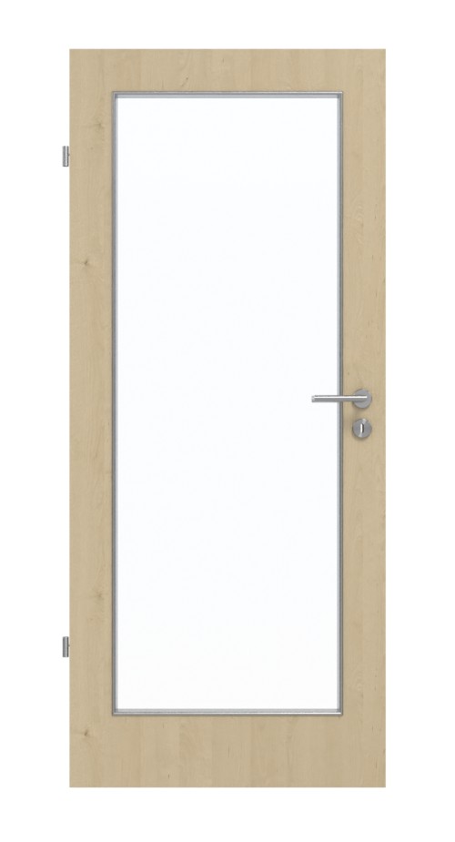 Duże wycięcie na szybę stanowi centralny punkt projektu drzwi. Jasny beż i delikatnie zaznaczone sęki nadają ton dekorowi Natura Klon. Wytrzymała warstwa HPL jest odporna na ścieranie, uderzenia i zarysowania oraz wyjątkowo odporna na działanie światła.