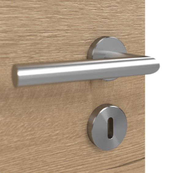 Estetyczna funkcjonalna drzwi przekonuje solidną powierzchnią HPL oraz odpornością na krótkotrwałe zachlapania i kondensację: