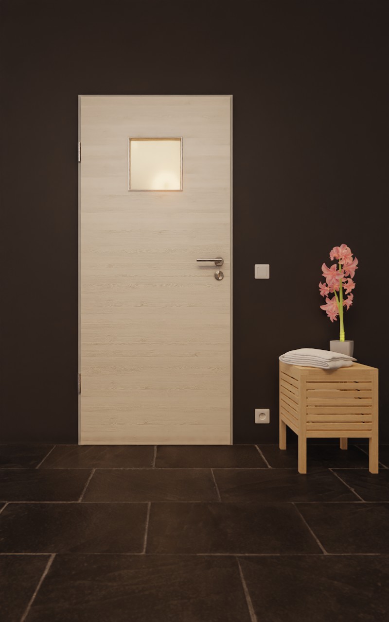 Drzwi do pomieszczeń wilgotnych wyróżniają się odpornością na krótkotrwałą wysoką wilgotność powietrza sięgającą nawet 100 procent. Ponadto są odporne na krótkotrwałe działanie rozprysków i spływającej wody kondensacyjnej. Wystarczającą stabilność zapewnia wkładka z pełnej płyty wiórowej w pomieszczeniu wewnętrznym skrzydła drzwiowego. Dzięki przypisaniu do klasy obciążenia M drzwi do pomieszczeń wilgotnych doskonale nadają się do użytku prywatnego.