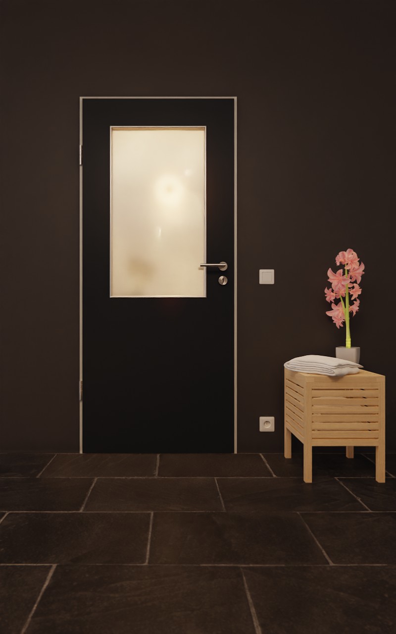 Ponadczasowe drzwi funkcjonalne wyróżniają się łatwą do czyszczenia okleiną HPL oraz stabilnym wkładem z pełnej płyty wiórowej: