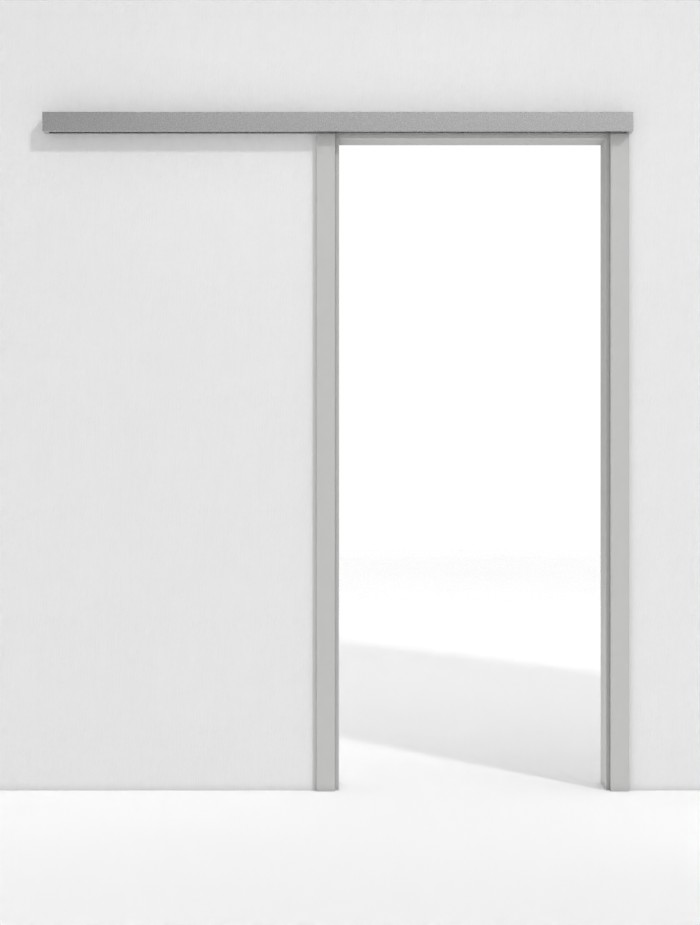 Wszechstronny system Line z ościeżnicą przesuwną do drzwi, które biegną przed ścianą: