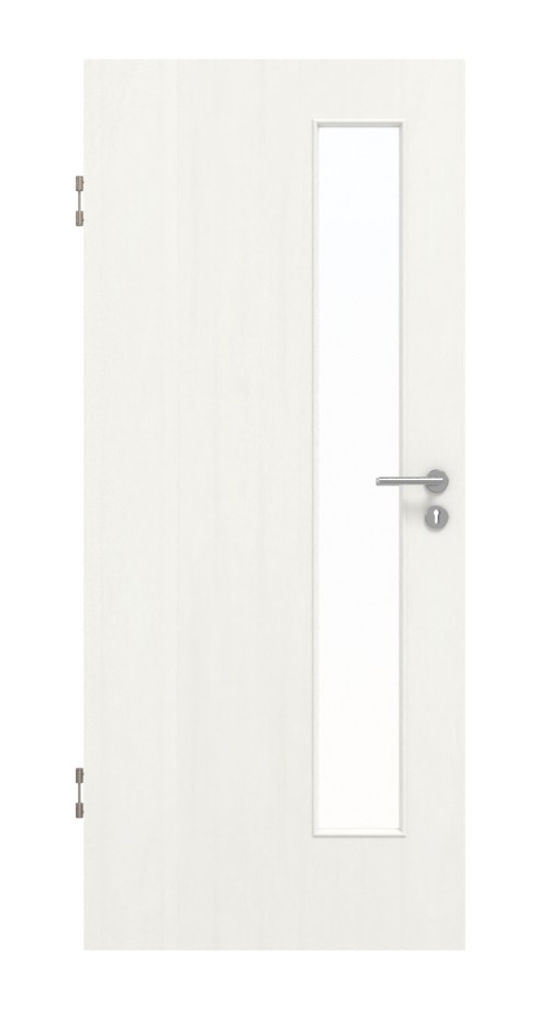 Wnętrze skrzydła drzwiowego wykonane jest z płyty wiórowej pełnej. Klasa obciążenia S gwarantuje, że model wytrzyma wysokie poziom użytkowania. Oprócz zamka z wkładką cylindryczną i dwóch 3-częściowych zawiasów, standardowa dostawa obejmuje również listwy przyszybowe.