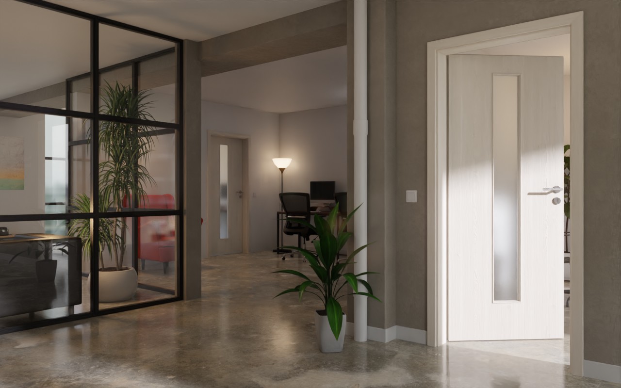 Stylowe drzwi wewnętrzne z wbudowanymi listwami szklanymi: