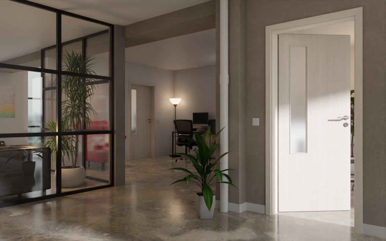 Ładna wewnętrzna drzwi obiektowe z dołączonymi listwami szklanymi: