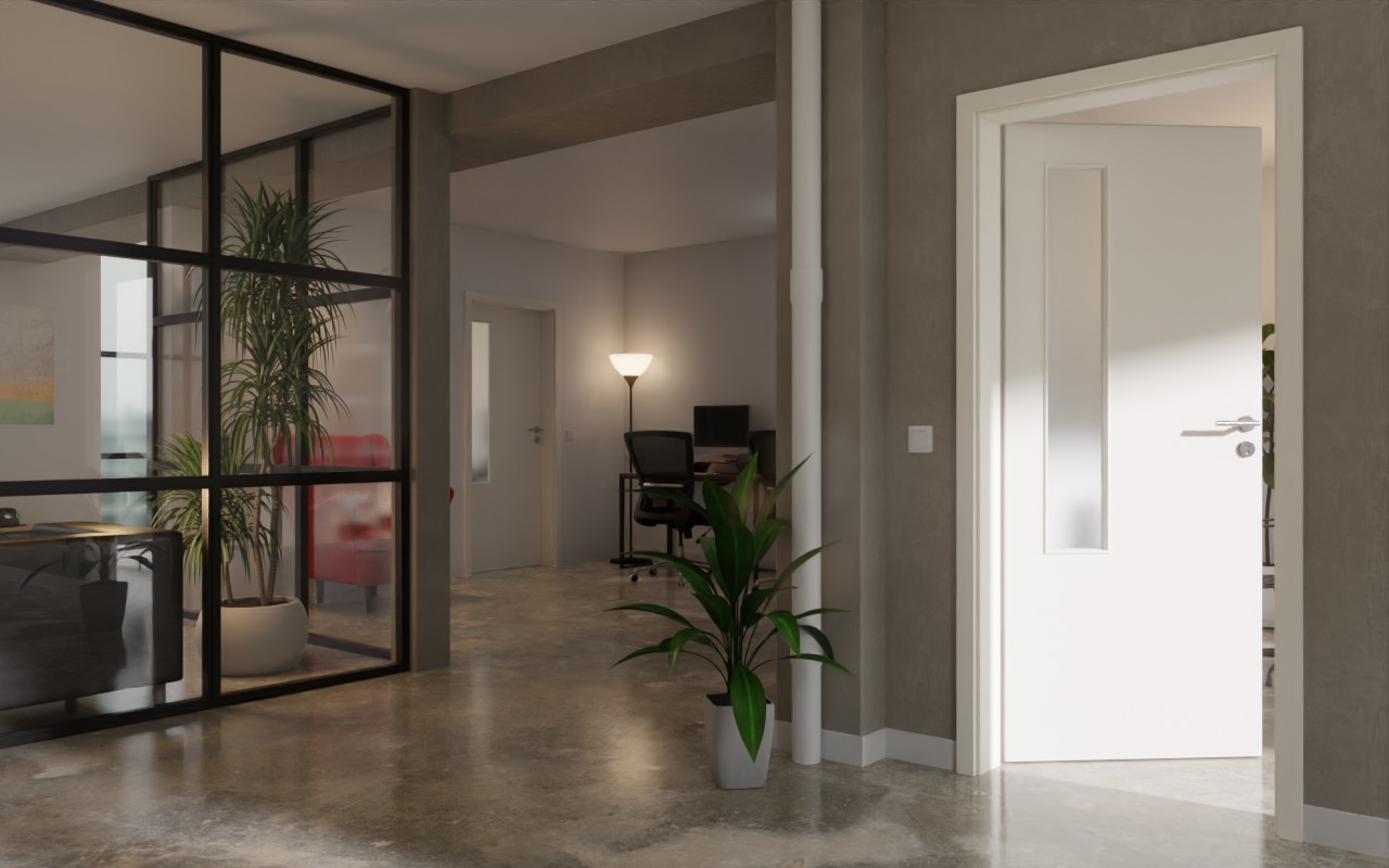 Atrakcyjna wewnętrzna drzwi obiektowe z dołączonymi listwami szklanymi: