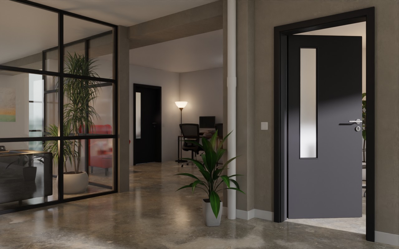 Stylowe drzwi wewnętrzne z wbudowanymi listwami szklanymi: