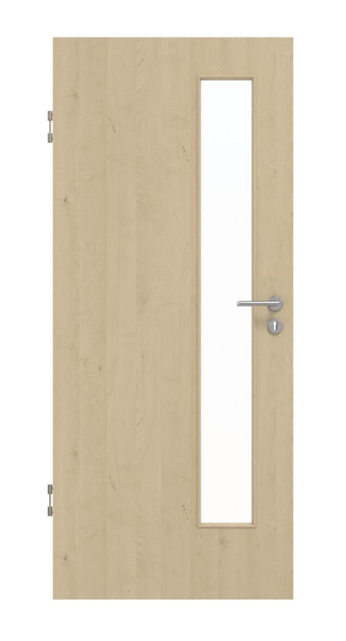 Wąskie przeszklenie sprawia, że drzwi prezentują się dekoracyjnie. Ponadto otwór pozwala na piękny dopływ światła do pomieszczenia. Dzięki swojej wytrzymałości łatwy w pielęgnacji dekor HPL jest odporny na ścieranie i zarysowania.