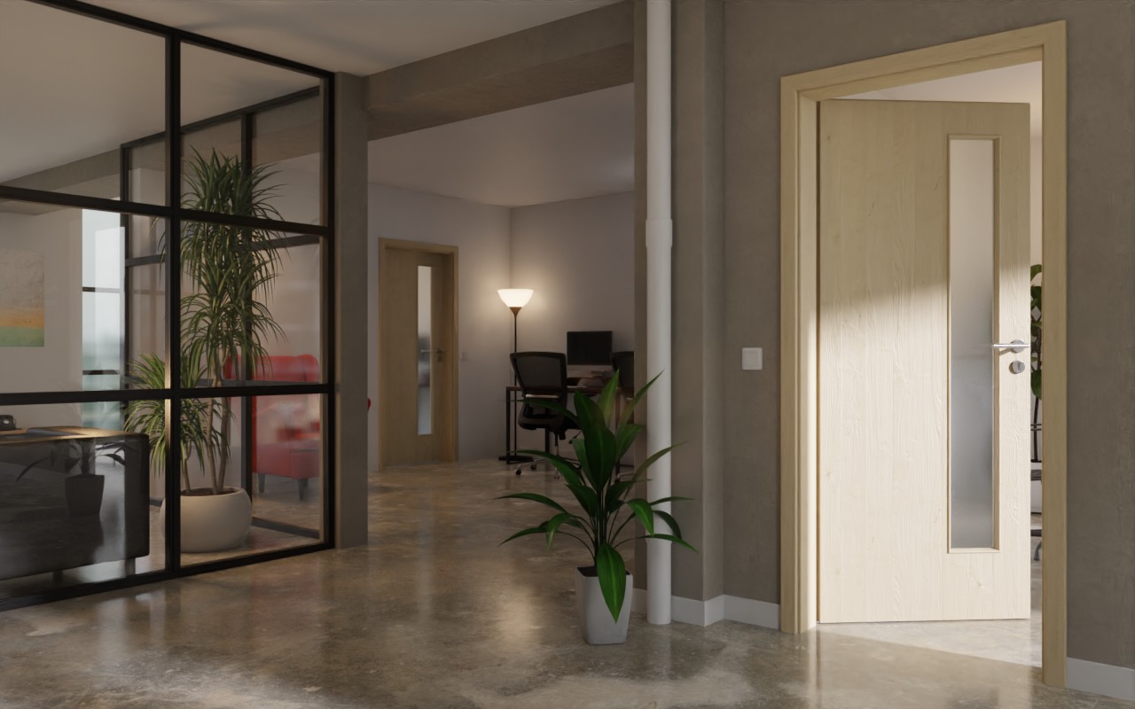 Atrakcyjna wewnętrzna drzwi obiektowe z dodatkowymi listwami szklanymi: