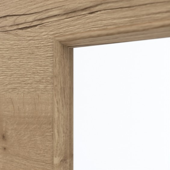 Na skrzydle drzwiowym po stronie zawiasów znajduje się wąskie przeszklenie. Oprócz autentycznego odcienia, dekor Authentic Risseiche Quer dzięki swoim niezwykle realistycznym słojom i sękom nadaje Twojemu domowi bardziej naturalny wygląd. Laminat HPL jest łatwy w czyszczeniu i wytrzymuje duże obciążenia.