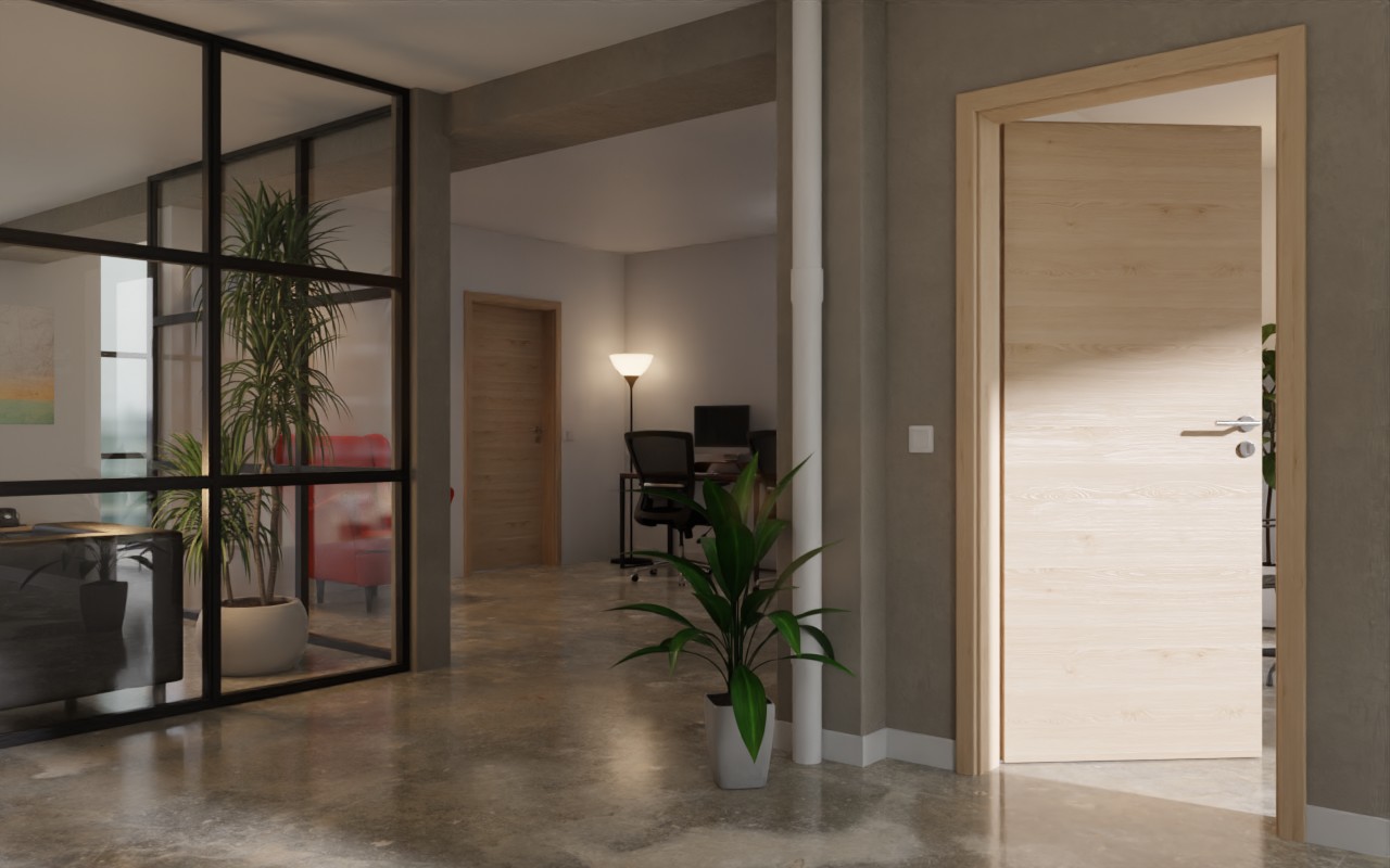 Rdzeń skrzydła drzwiowego stanowi wytrzymała płyta wiórowa rurowa. Dzięki klasie obciążenia S intensywne użytkowanie nie stanowi żadnego problemu. Drzwi wewnętrzne do obiektu posiadają klasę klimatyczną 2, co zapobiega wypaczaniu się w przypadku wahań temperatury. W zestawie znajduje się zamek z wkładką cylindryczną oraz dwa 3-częściowe zawiasy.