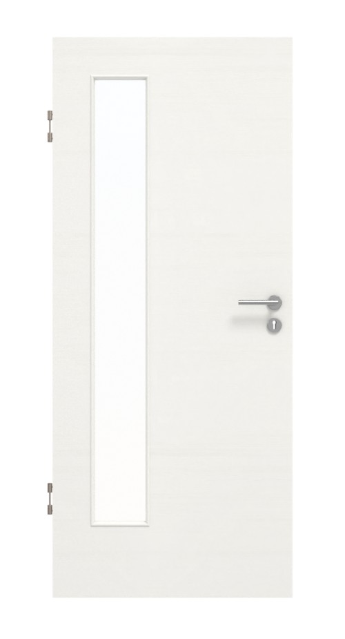 Aby zapewnić stabilność, w rdzeniu skrzydła drzwiowego zastosowano płytę wiórową pełną. Intensywne użytkowanie nie ma wpływu na drzwi o klasie wytrzymałości S. W standardzie otrzymujesz wraz z dostawą listwy przyszybowe, zamek z wkładką cylindryczną oraz dwa 3-częściowe zawiasy jako praktyczne dodatki.