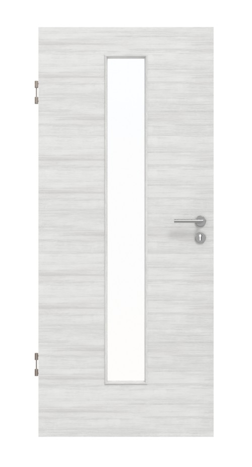 Wnętrze skrzydła drzwiowego wykonane jest z płyty wiórowej pełnej. Klasa obciążenia S gwarantuje, że model wytrzyma wysokie poziom użytkowania. Oprócz listew przyszybowych w standardzie otrzymujesz zamek z wkładką cylindryczną oraz dwa 3-częściowe zawiasy.