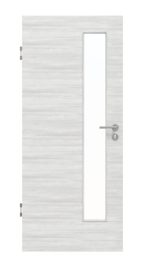 Dzięki umieszczonemu po stronie zamka wycięciu na szybę model ten stanowi modny akcent. Na powierzchni dekoru Authentic Grigio Quer widoczne są subtelne, przebiegające poprzecznie linie. Dzięki jasnoszaremu kolorowi powierzchnia ta pasuje zarówno do nowoczesnych, jak i klasycznych wnętrz mieszkalnych. Ponadto laminat HPL jest bardzo wytrzymały, odporny na działanie światła i łatwy w pielęgnacji.