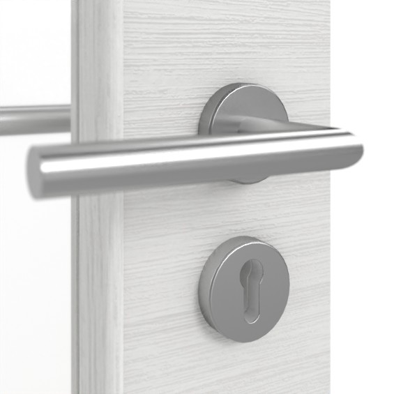 Płyta wiórowa pełna w pomieszczeniu wewnętrznym zapewnia wysoką stabilność. Intensywne użytkowanie nie ma wpływu na drzwi o klasie wytrzymałości S. Oprócz listew przyszybowych, do standardowych dodatków należą zamek z wkładką cylindryczną i dwa 3-częściowe zawiasy.