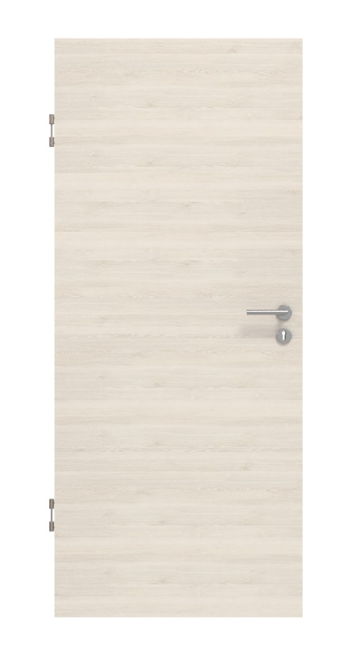 Rdzeń skrzydła drzwiowego tworzy wytrzymała płyta wiórowo-otworowa. Dzięki klasie wytrzymałości S intensywne użytkowanie nie stanowi żadnego problemu. Nawet przy wahaniach temperatury drzwi wewnętrzne do obiektu, przetestowane zgodnie z klasą klimatyczną 2, pozostają stabilne. W zestawie znajdują się dwa 3-częściowe zawiasy i zamek z wkładką cylindryczną.