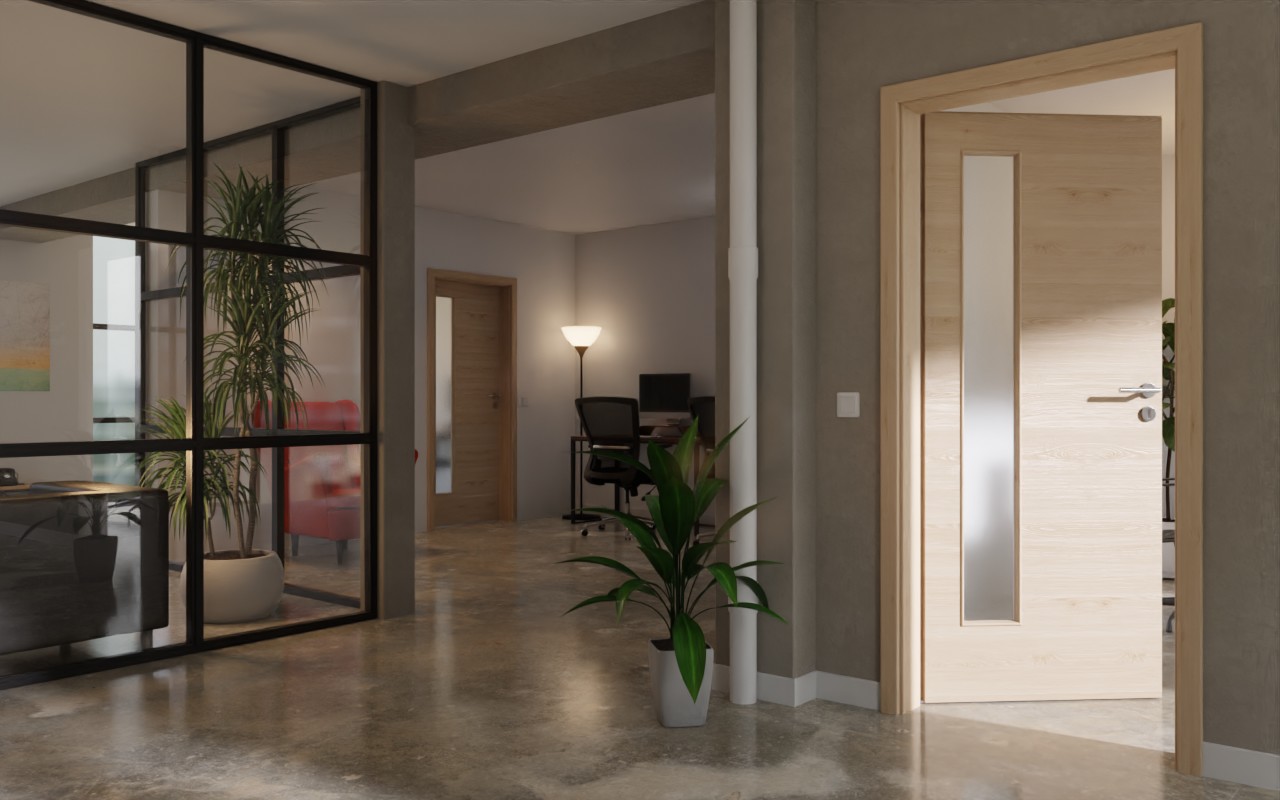 Stylowa wewnętrzna drzwi obiektowe z dołączonymi listwami szklanymi: