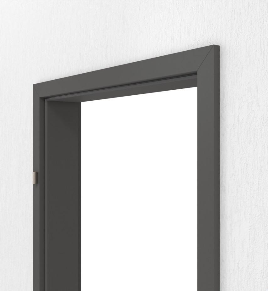 Stabilizująca ościeżnica do drzwi łazienkowych z elementem mocującym, srebrnym kątownikiem zamka i uszczelką ościeżnicy: