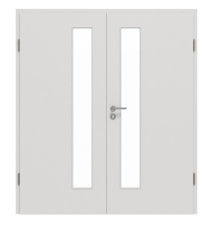 Drzwi dwuskrzydłowe doskonale nadają się zarówno do pomieszczeń prywatnych, jak i biurowych. Posiadają rdzeń z pełnej płyty wiórowej i zostały przetestowane w grupie obciążenia M. Aby wszystko było dopasowane, drzwi są dostarczane wraz z ościeżnicą, zawiasami i zamkiem.