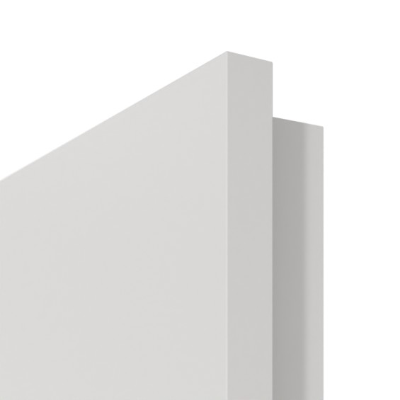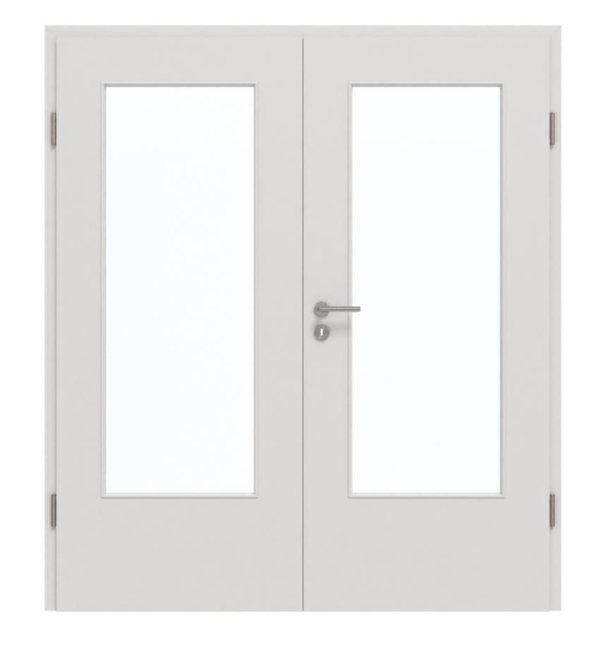 Duże, prostokątne przeszklenie zajmuje większość powierzchni obu skrzydeł drzwiowych. Powierzchnia CePaL w kolorze Silver Grey nadaje skrzydłu drzwiowemu nowoczesny wygląd i jednolity odcień szarości. Warstwa wierzchnia wykazuje się wyjątkową odpornością na ścieranie i uderzenia. Ponadto jest odporna na światło i łatwa do czyszczenia.