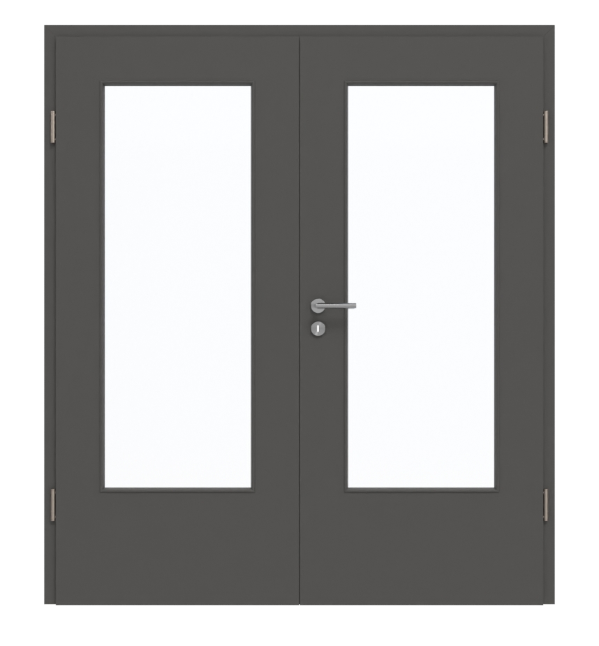 Dzięki rdzeniowi z pełnej płyty wiórowej i certyfikatowi klasy wytrzymałości M drzwi dwuskrzydłowe mogą być stosowane zarówno w pomieszczeniach prywatnych, jak i biurowych. Cena obejmuje oba skrzydła drzwiowe, odpowiednią ościeżnicę, zawiasy i zamek na klucz.