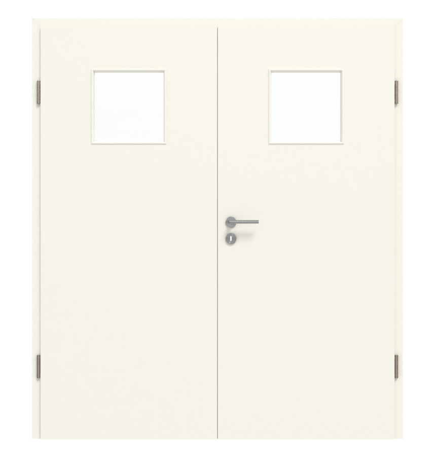 Drzwi dwuskrzydłowe są produkowane z rdzeniem z pełnej płyty wiórowej. Dzięki temu spełnia wymagania grupy obciążenia M i może być stosowana zarówno w pomieszczeniach prywatnych, jak i biurowych. Ościeżnica, zawiasy i zamek na klucz są już zintegrowane w cenie.