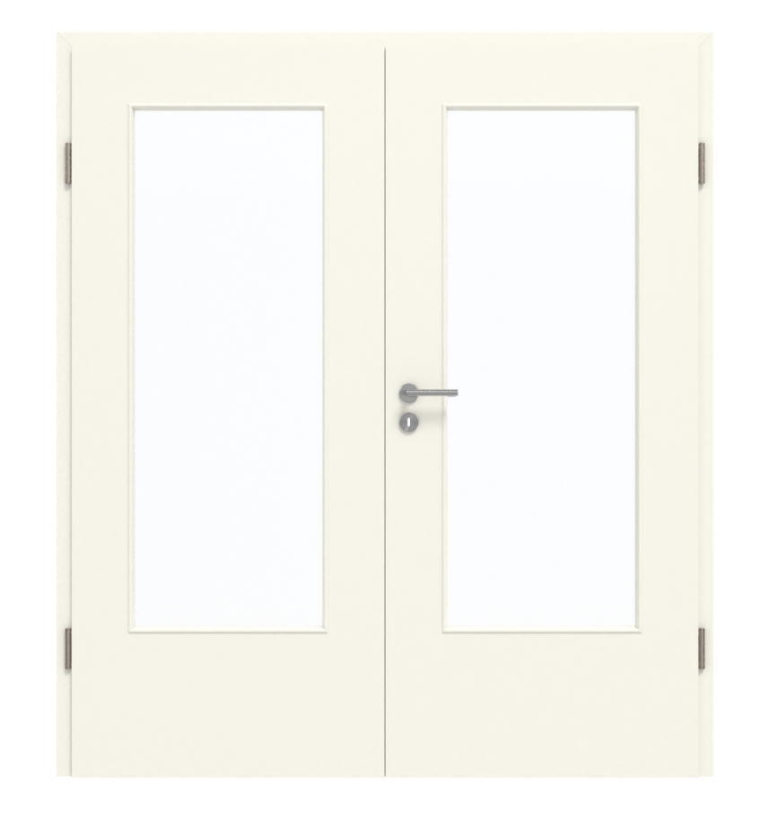 Aby uzyskać wrażenie otwartej, przestronnej przestrzeni: Drzwi dwuskrzydłowe LA-DIN Snow White firmy Garant przekonują stylowym wzorem.