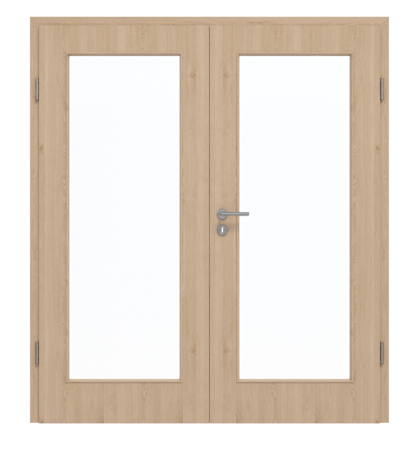 Dzięki rdzeniowi z pełnej płyty wiórowej i certyfikatowi klasy wytrzymałości M drzwi dwuskrzydłowe mogą być stosowane zarówno w pomieszczeniach prywatnych, jak i biurowych. W zestawie znajdują się skrzydło ruchome i skrzydło stałe, ościeżnica, zawiasy i zamek bębenkowy.