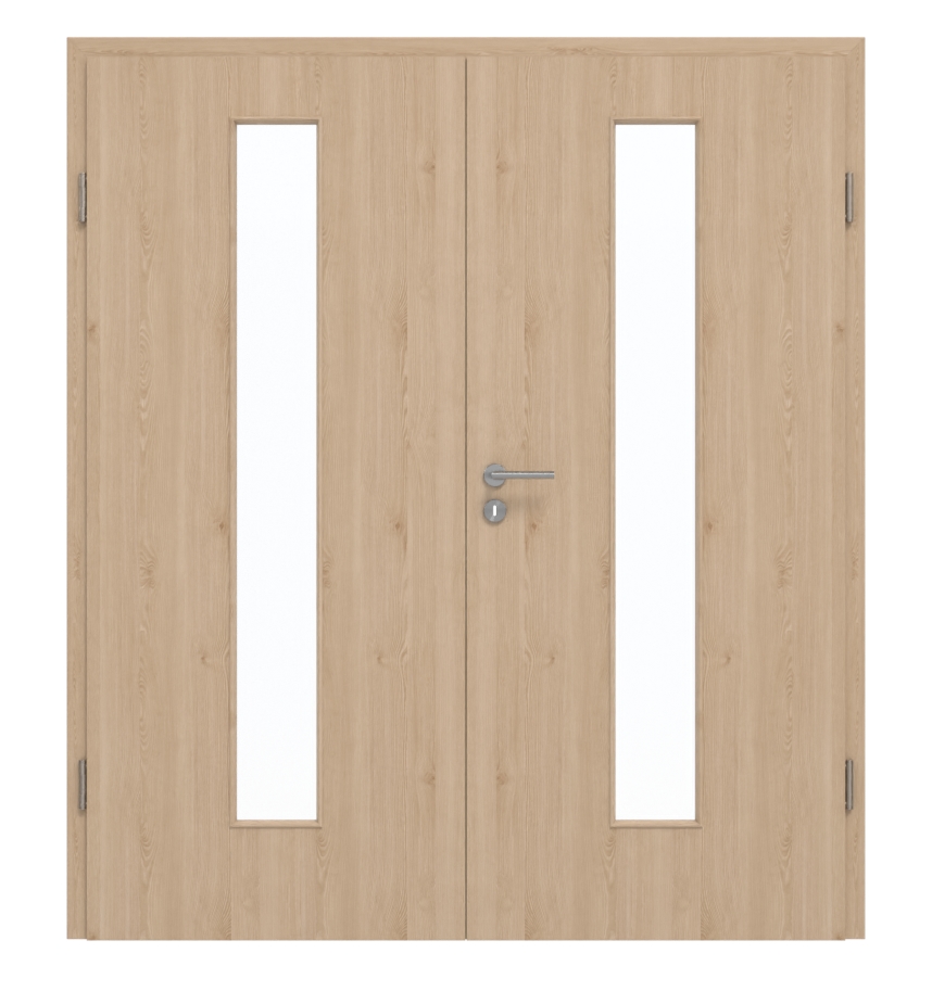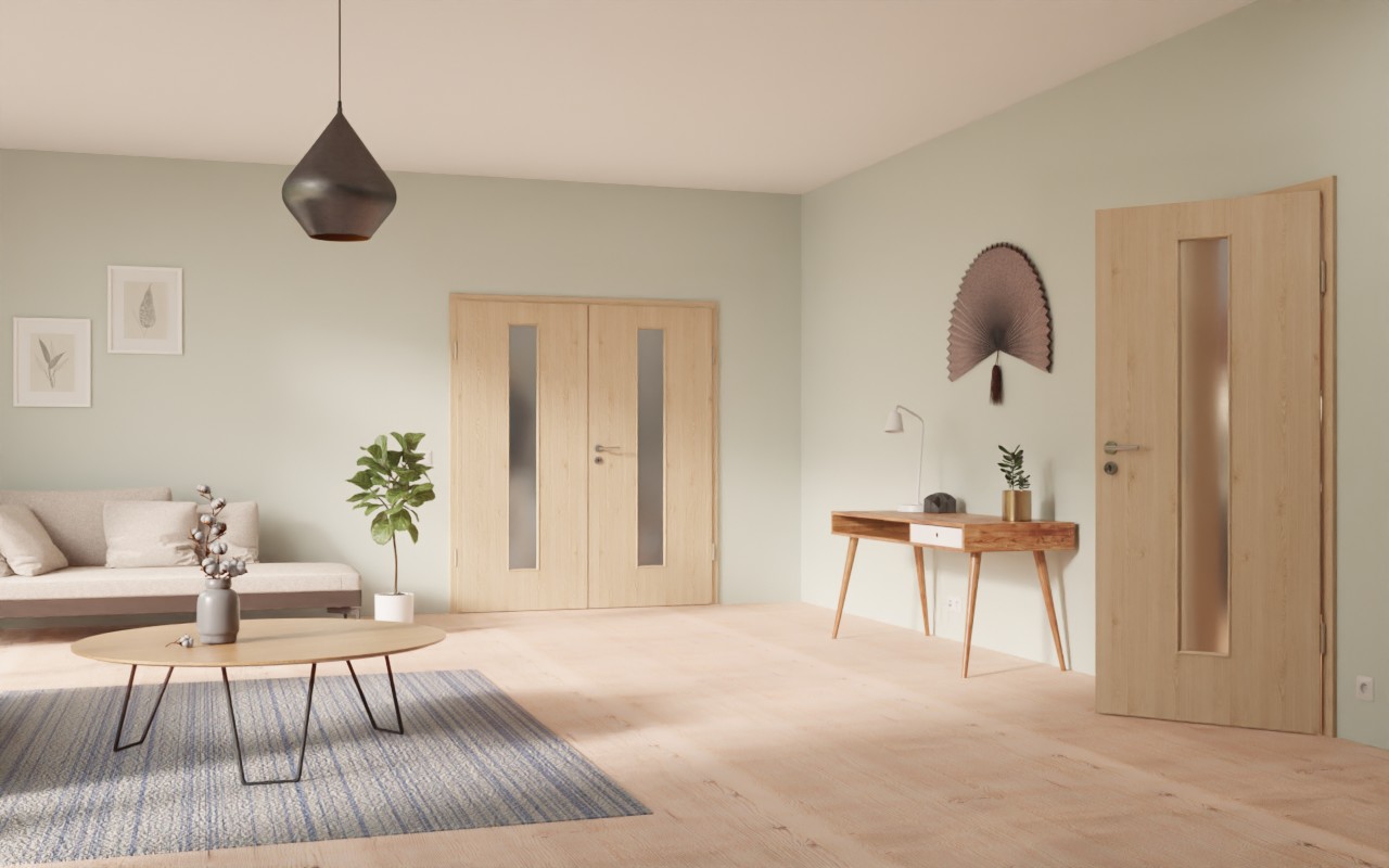 Aby zapewnić doświetlenie również w ciemnych pomieszczeniach, skrzydła drzwi wyposażono w wąskie przeszklenia. Wygląd drewna dekoru CPL Authentic Achat zachwyca bogatym w detale usłojeniem i jasną kolorystyką, które sprawiają, że wygląda on niezwykle realistycznie. Warstwa wierzchnia wykazuje się wyjątkową odpornością na ścieranie i uderzenia. Ponadto jest odporna na światło i łatwa do czyszczenia.