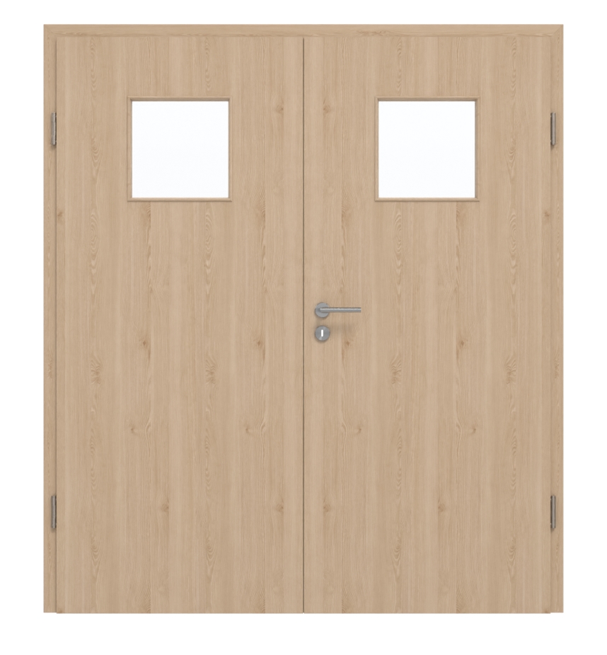 Drzwi dwuskrzydłowe doskonale nadają się zarówno do pomieszczeń prywatnych, jak i biurowych. Posiadają rdzeń z pełnej płyty wiórowej i zostały przetestowane w grupie obciążenia M. Aby wszystko było dopasowane, drzwi są dostarczane wraz z ościeżnicą, zawiasami i zamkiem.
