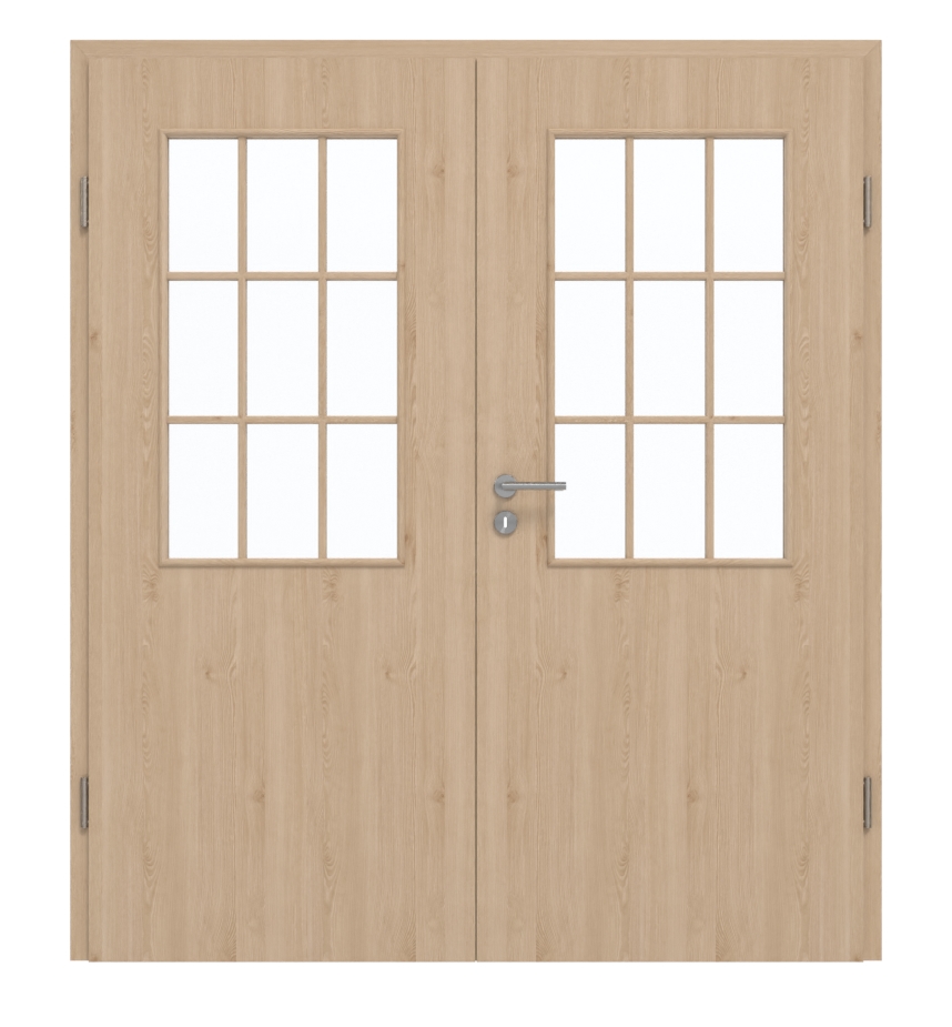 Dzięki dopuszczeniu do grupy obciążenia M drzwi podwójne nadają się zarówno do budynków mieszkalnych, jak i biurowych. Rdzeń z pełnej płyty wiórowej zapewnia jej stabilność. Podana cena obejmuje oba skrzydła drzwiowe, odpowiednią ościeżnicę, zamek na klucz piórowy oraz zawiasy.