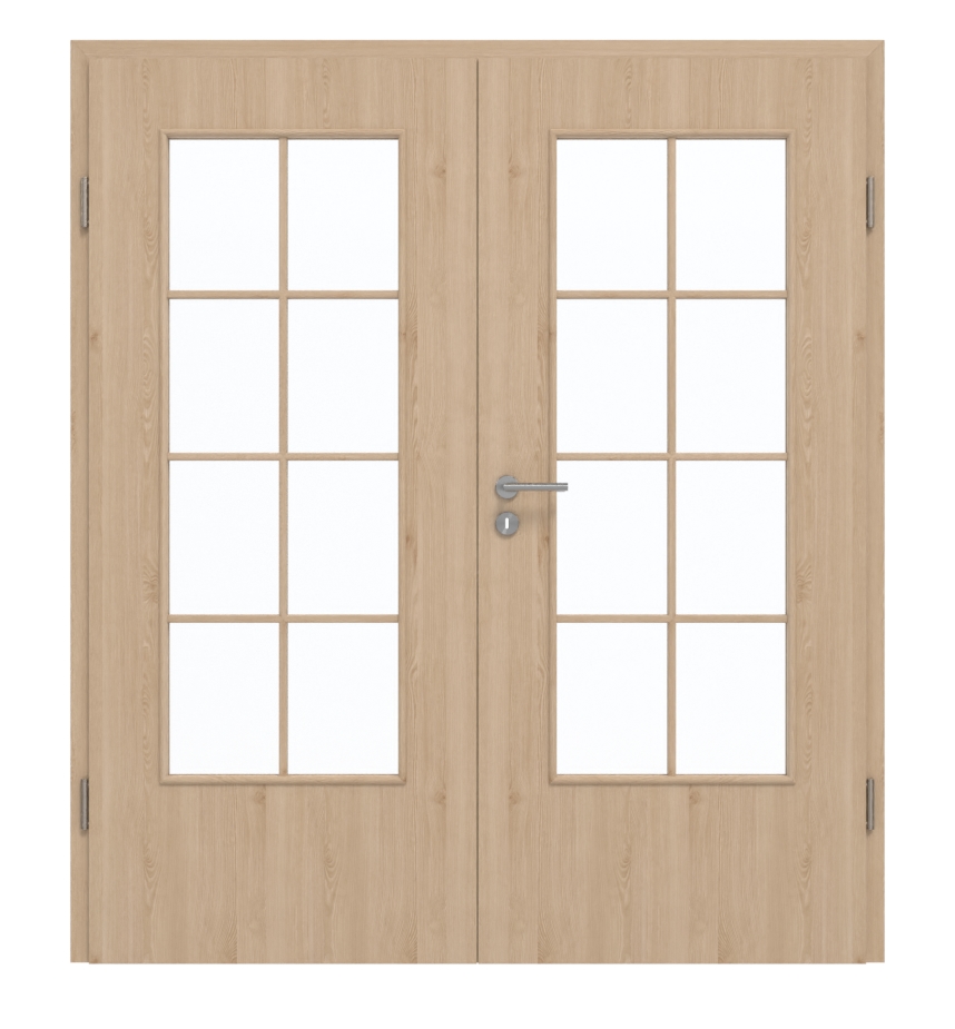 Prostokątne wycięcia na szybę zajmują większość powierzchni skrzydeł drzwiowych i zapewniają przyjemny dopływ światła. Delikatne, nakładane szprosy nadają designowi piękną symetrię. Jasne odcienie drewna i delikatne usłojenia charakteryzują spokojny dekor Authentic Achat DA. Wytrzymała warstwa wierzchnia jest łatwa w czyszczeniu i odporna na uderzenia i zarysowania.