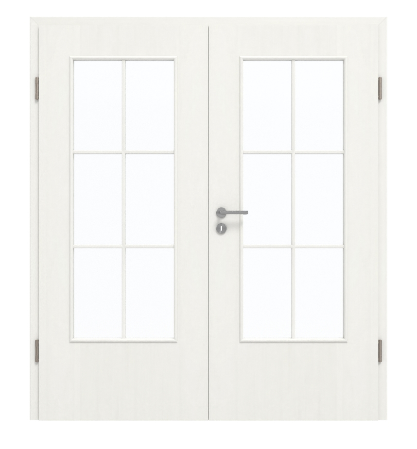 Smukłe ramy szprosowe nadają dużym przeszkleniom przyjemną symetrię i elegancję. W nowoczesnym i świeżym odcieniu bieliwidoczne są delikatne słoje, podobnie jak w prawdziwym drewnie. Ponadto łatwa w pielęgnacji laminowana powierzchnia charakteryzuje się wysoką odpornością na zarysowania i ścieranie.