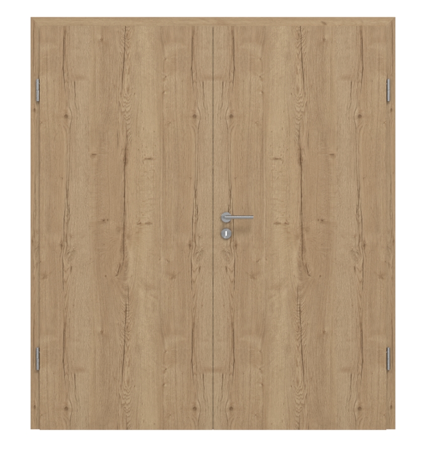 Dzięki przynależności do grupy obciążeniowej M drzwi podwójne nadają się zarówno do pomieszczeń prywatnych, jak i biurowych. Ich rdzeń wykonany jest z opcjonalnego rdzenia z płyty wiórowej lub pełnej. W zestawie znajdują się skrzydło drzwiowe, skrzydło stałe, ościeżnica, zawiasy oraz zamek z kluczem.
