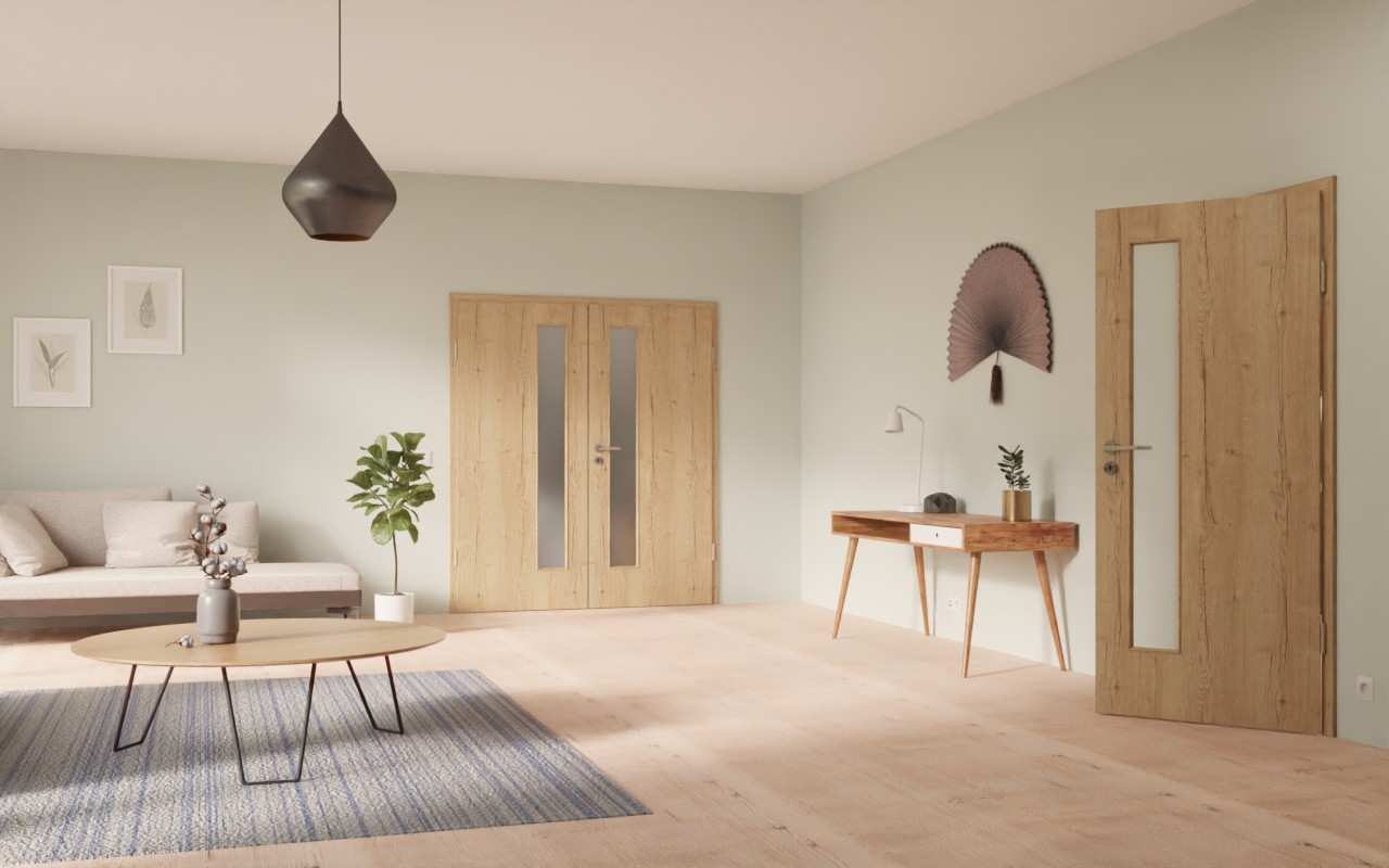 Każde z wąskich przeszklen zdobi skrzydła drzwi od strony zamka. Wyraziste usłojenie nadaje naturalnemu dekorowi CPL Authentic Risseiche harmonijny wygląd. Dekoracyjna warstwa wierzchnia jest odporna na uszkodzenia oraz niewrażliwa na zarysowania i uderzenia.