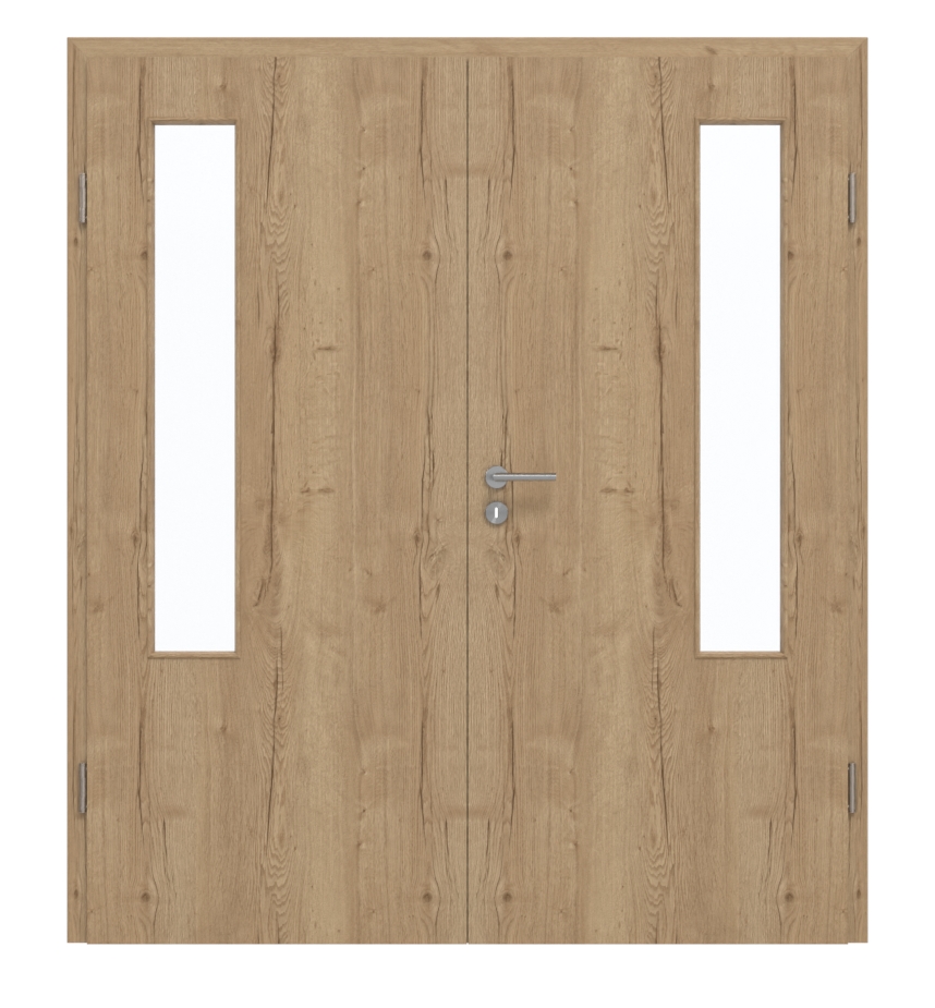 Dzięki rdzeniowi z pełnej płyty i testowi w grupie obciążeniowej M, drzwi podwójne nadają się zarówno do przestrzeni prywatnych, jak i biurowych. Oprócz skrzydeł drzwiowych, w zestawie znajdują się również ościeżnica, zamek i zawiasy.