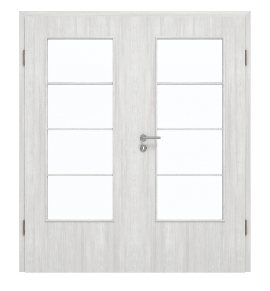 Ciemne pomieszczenia stają się jaśniejsze dzięki dużym przeszkleniom. Delikatne, poziome listwy dzielą szkło na cztery sekcje. Subtelne odcienie i pionowe usłojenie dekoru Authentic Grigio DA nadają skrzydłu drzwi nowoczesny wygląd drewna w jasnoszarym kolorze. Ich codzienna łatwość w pielęgnacji oraz wysoka stabilność w obliczu obciążeń mechanicznych dodatkowo wyróżniają powłokę.