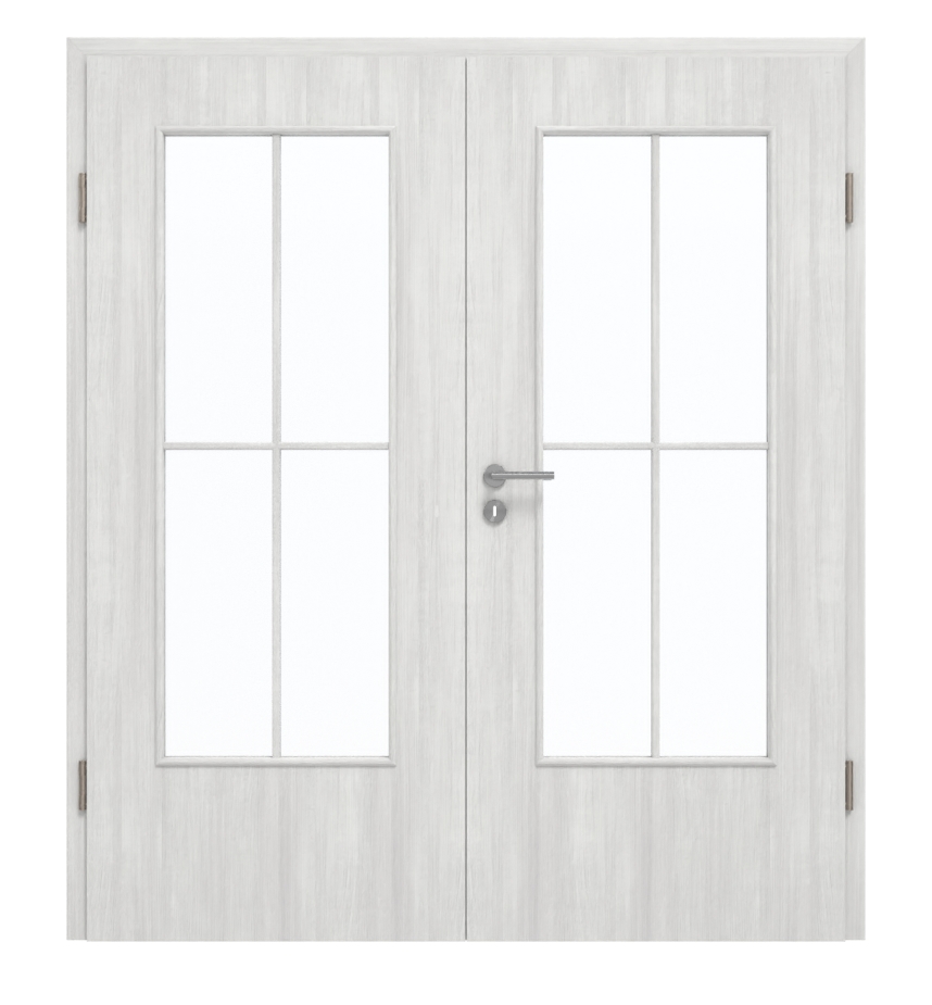 Dzięki przynależności do grupy obciążeniowej M, drzwi podwójne nadają się zarówno do pomieszczeń prywatnych, jak i biurowych. Ich rdzeń składa się z pełnej płyty wiórowej. W zestawie oprócz skrzydeł drzwiowych znajdują się również ościeżnica, odpowiednie zawiasy oraz zamek z kluczem.