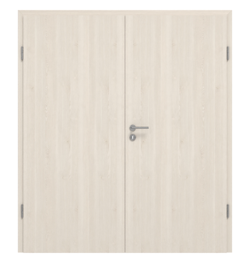 Drzwi dwuskrzydłowe są produkowane z rdzeniem z płyty wiórowej rurowej lub pełnej, w zależności od wyboru. Dzięki temu spełnia wymagania klasy użytkowania M i może być stosowana zarówno w pomieszczeniach prywatnych, jak i biurowych. Ościeżnica, zawiasy i zamek z kluczem są już wliczone w cenę.