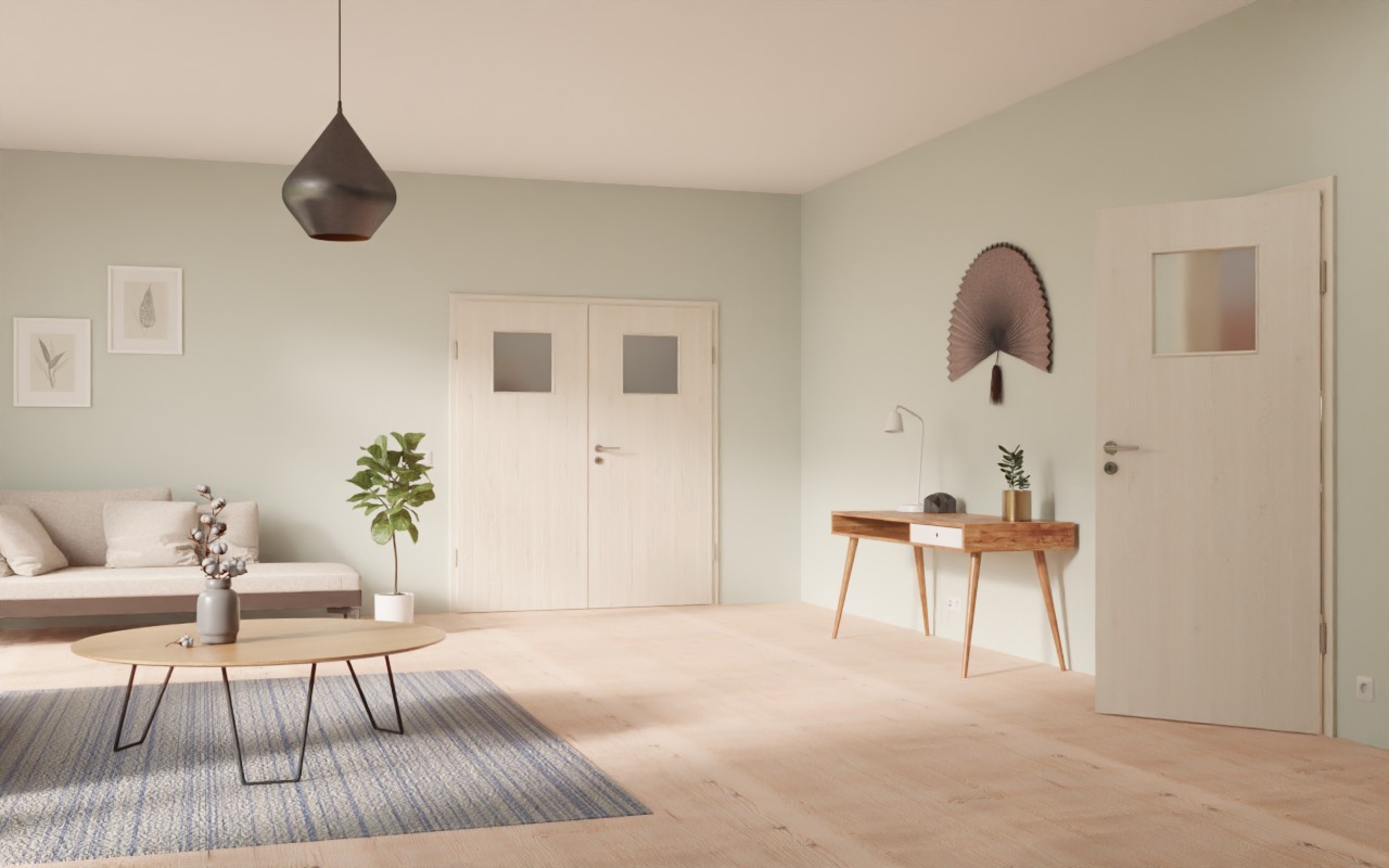 Urokliwe drzwi wewnętrzne z podwójnymi skrzydłami z odporną na zarysowania powłoką CPL: