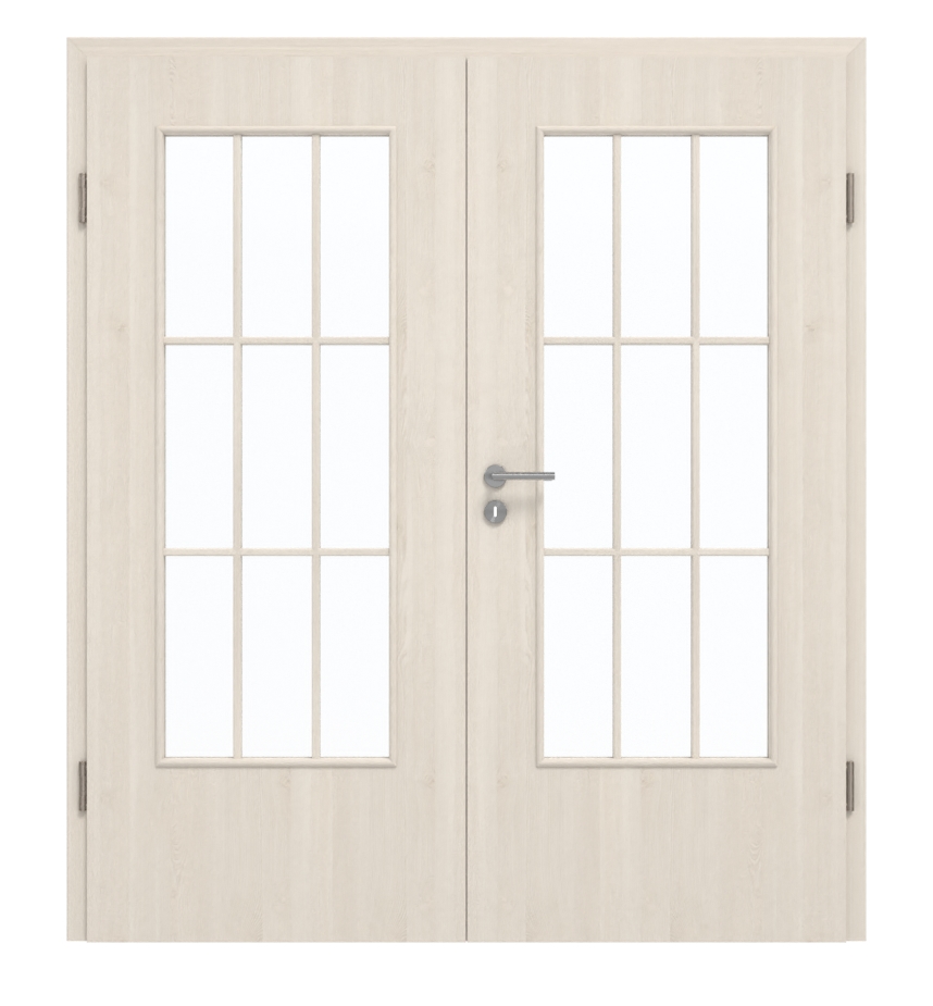 Dzięki rdzeniowi z litej płyty wiórowej te drzwi dwuskrzydłowe nadają się zarówno do pomieszczeń prywatnych, jak i biurowych. Zostały one przetestowane w grupie obciążeniowej M. Aby całość była kompletna, cena obejmuje nie tylko skrzydła drzwiowe, ale także ościeżnicę, zawiasy i zamek.