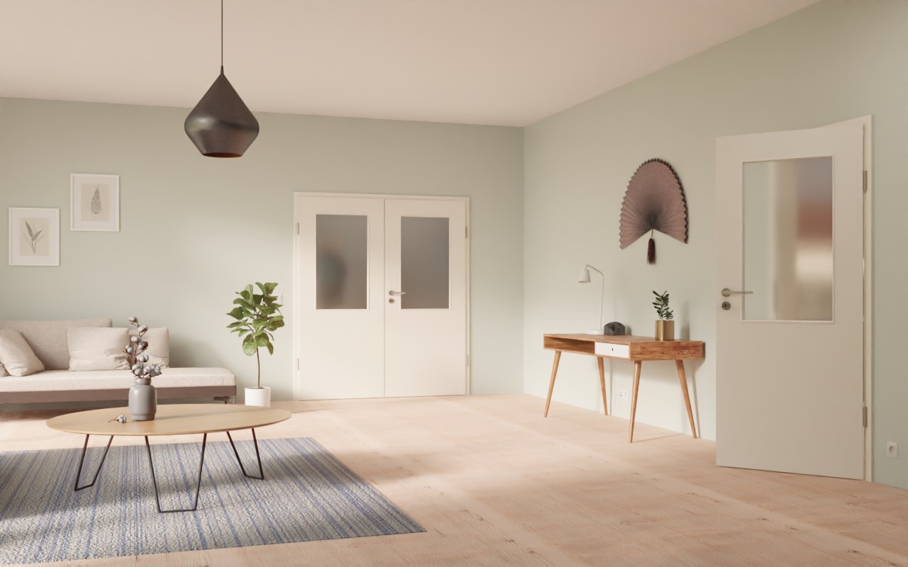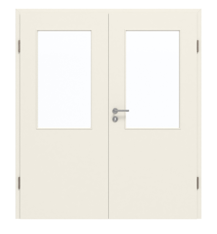 Stylowe drzwi podwójne z satynowym białym lakierem w grupie obciążenia M: