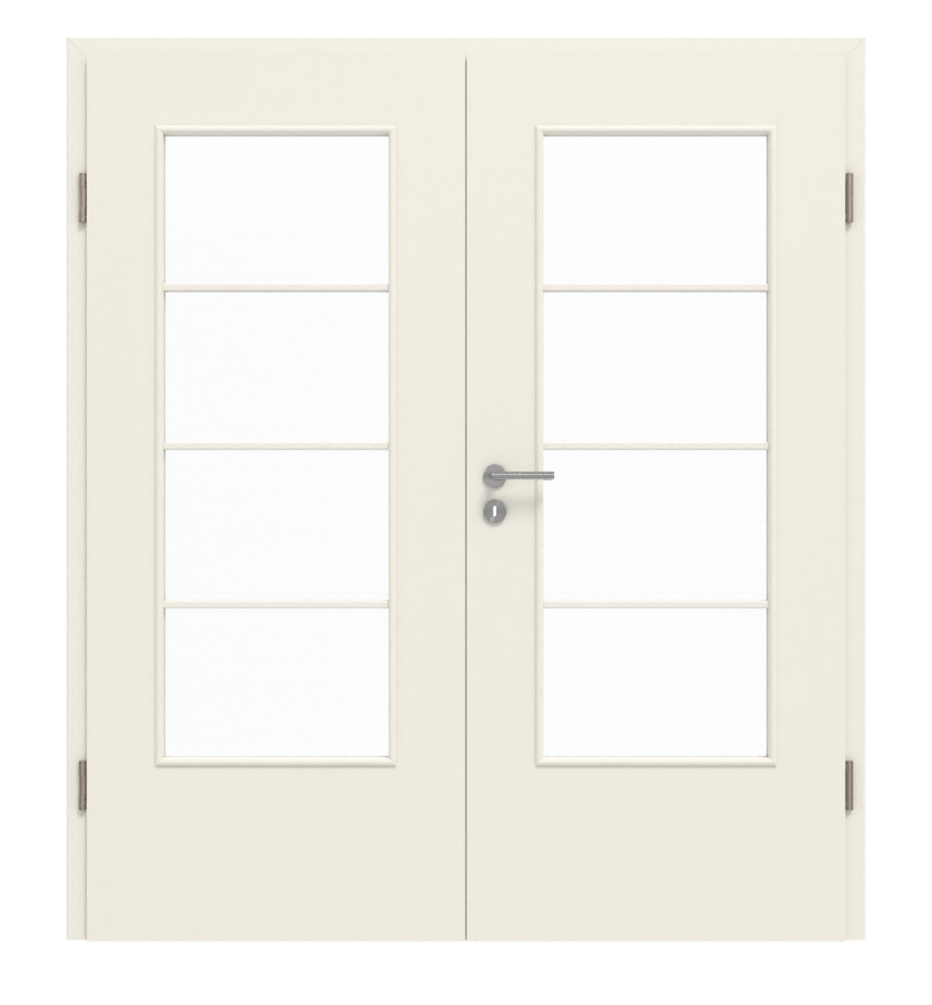 Dzięki dużym przeszkleniom, podkreślonym przez pionowe szprosy, drzwi zyskują nowoczesny wygląd. Matowy lakier w kolorze białym nadaje drzwiom ponadczasowy wygląd i zapewnia łatwość pielęgnacji. Lakier nakładany nowoczesną metodą zapewnia nieskazitelną powierzchnię o przyjemnej fakturze.