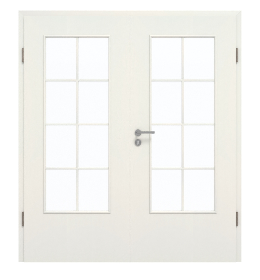 Pomieszczenia, do których zazwyczaj wpada niewiele światła, zyskują dzięki dużym przeszkleniom. Są one elegancko podzielone za pomocą ram z szprosami. Świeża biel skrzydła drzwiowego nie tylko dobrze wygląda – delikatna struktura powierzchni jest również przyjemna w dotyku. Dekoracyjna warstwa wierzchnia CPL jest odporna na uszkodzenia oraz niewrażliwa na zarysowania i uderzenia.
