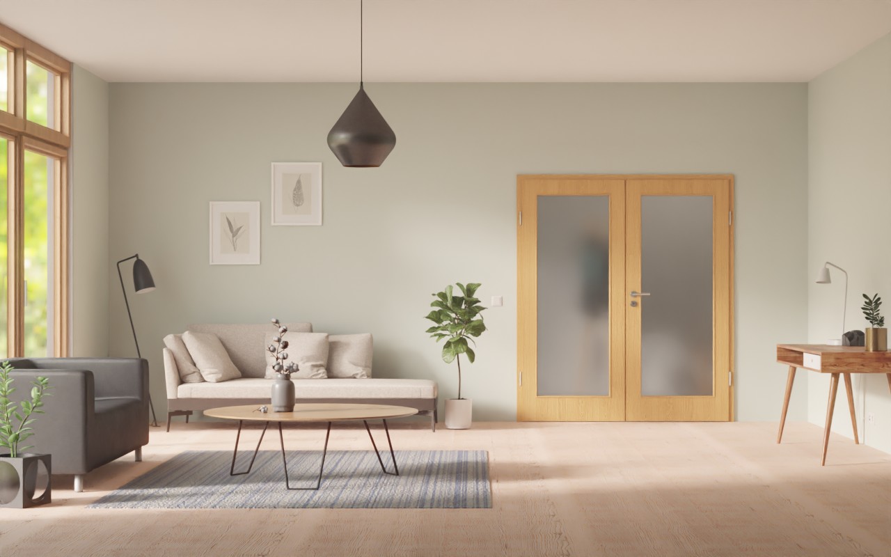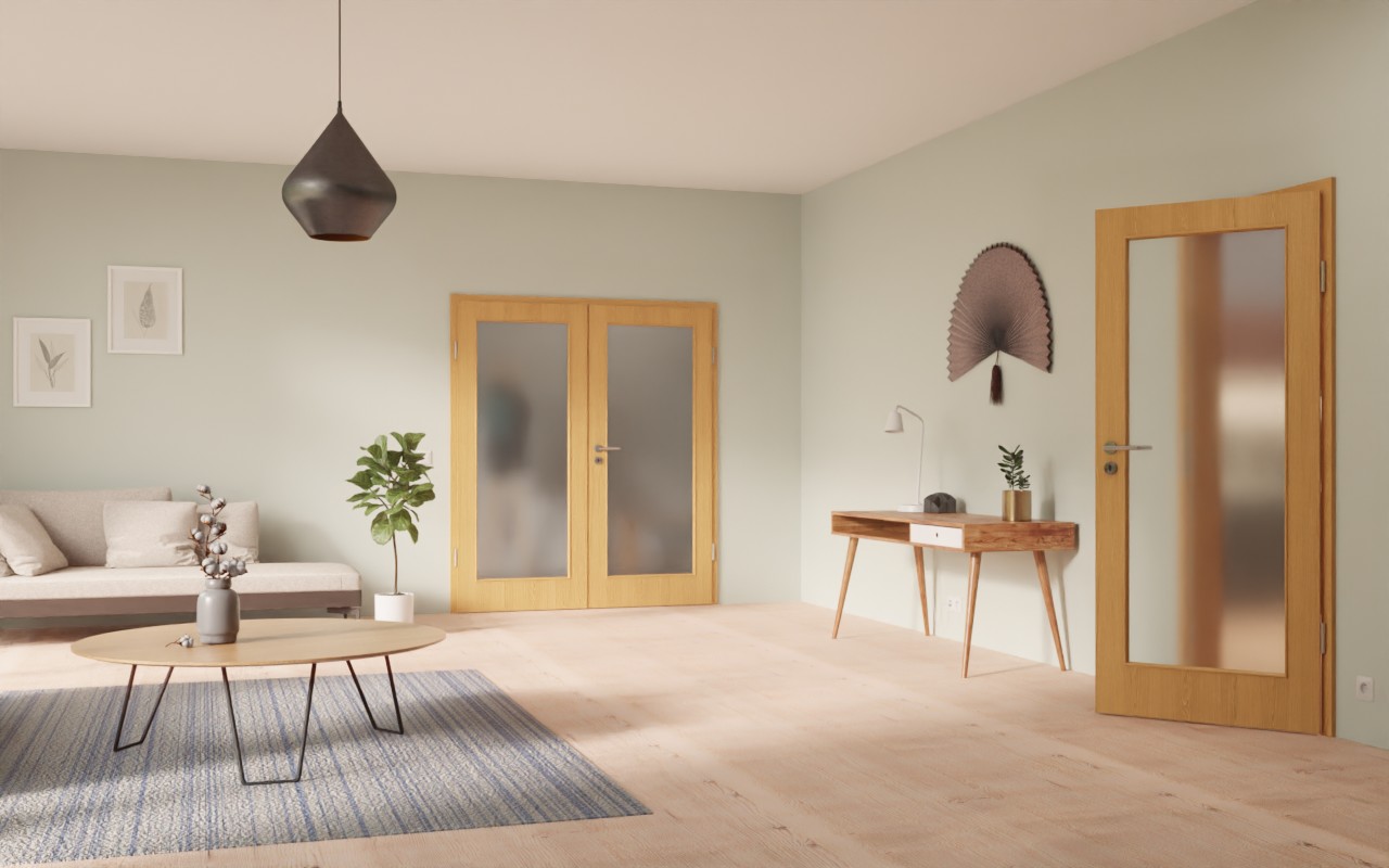 Piękne podwójne drzwi wewnętrzne z trwałą powierzchnią HPL: